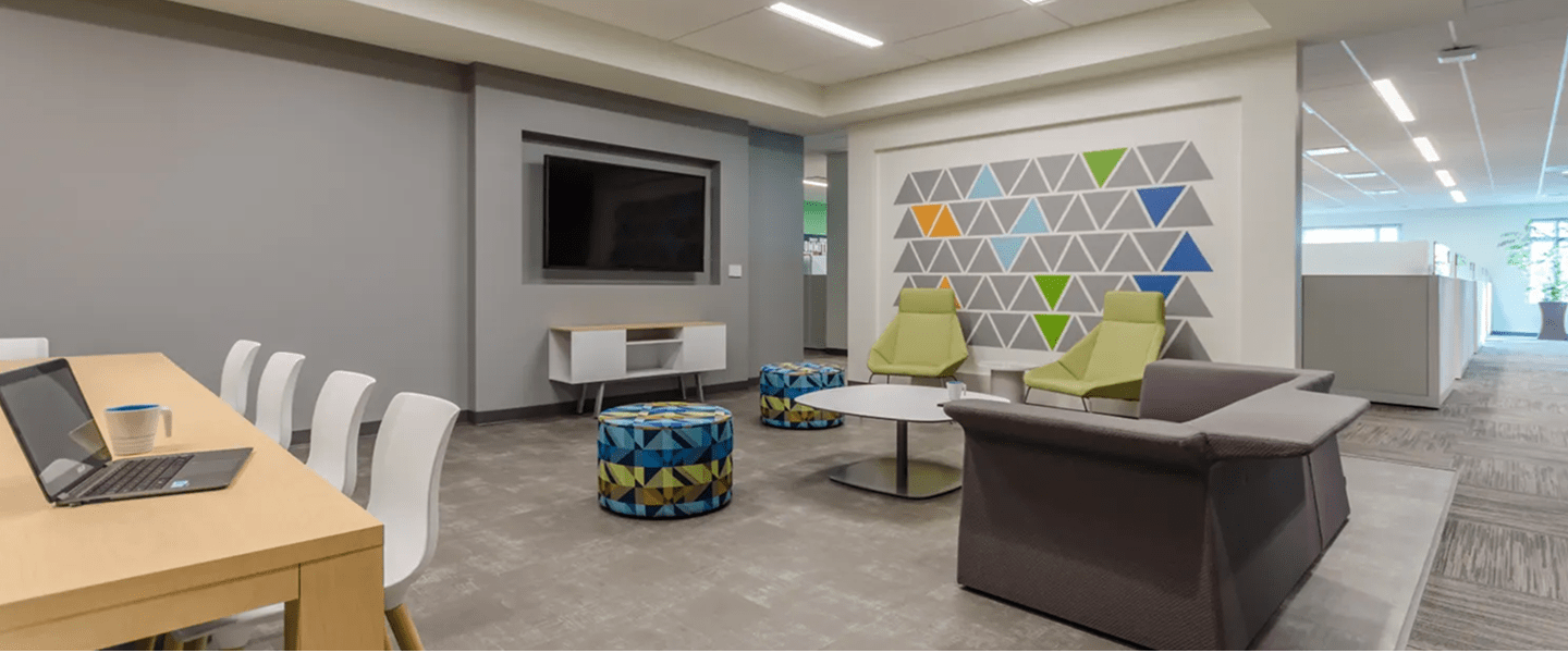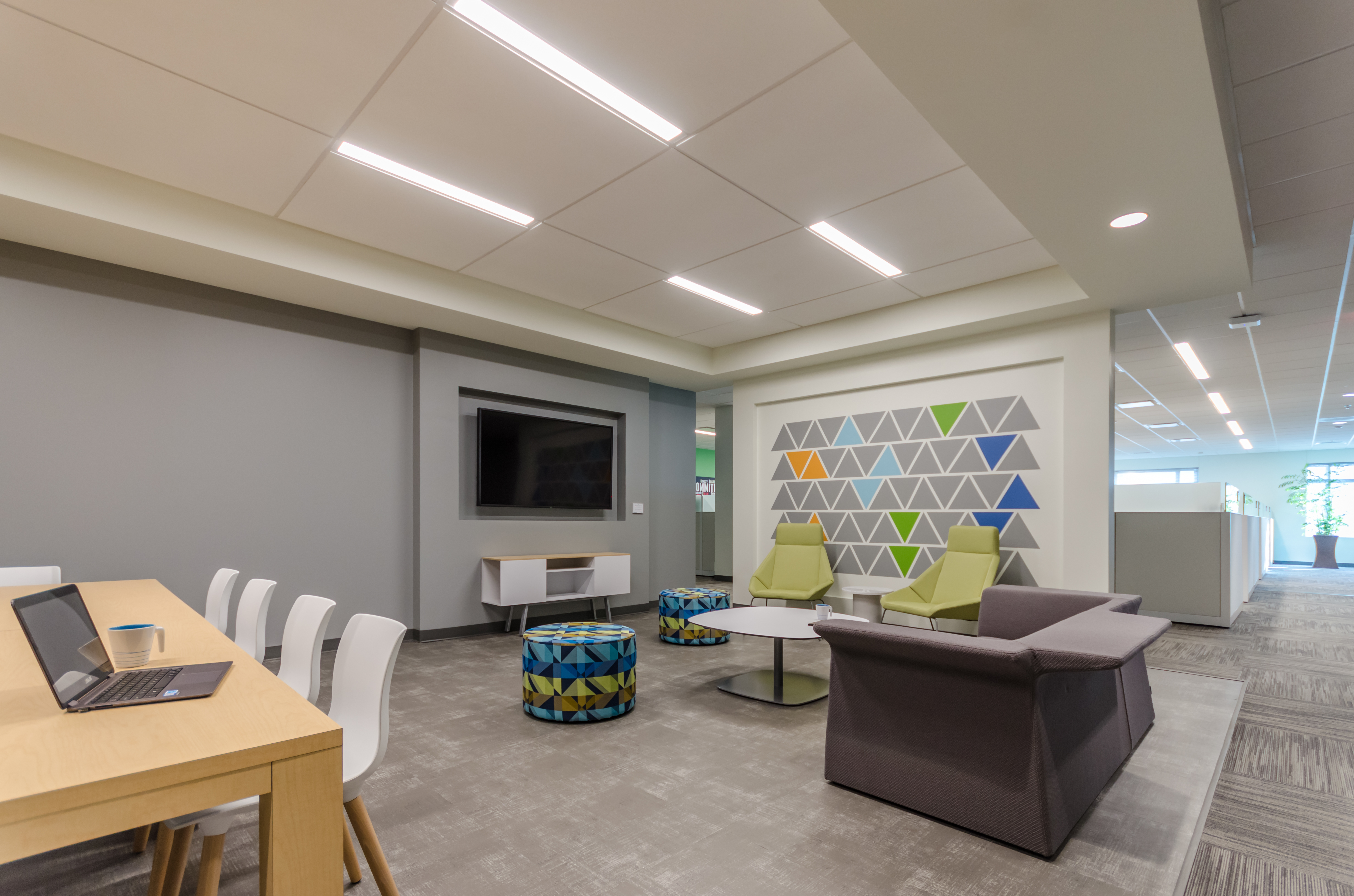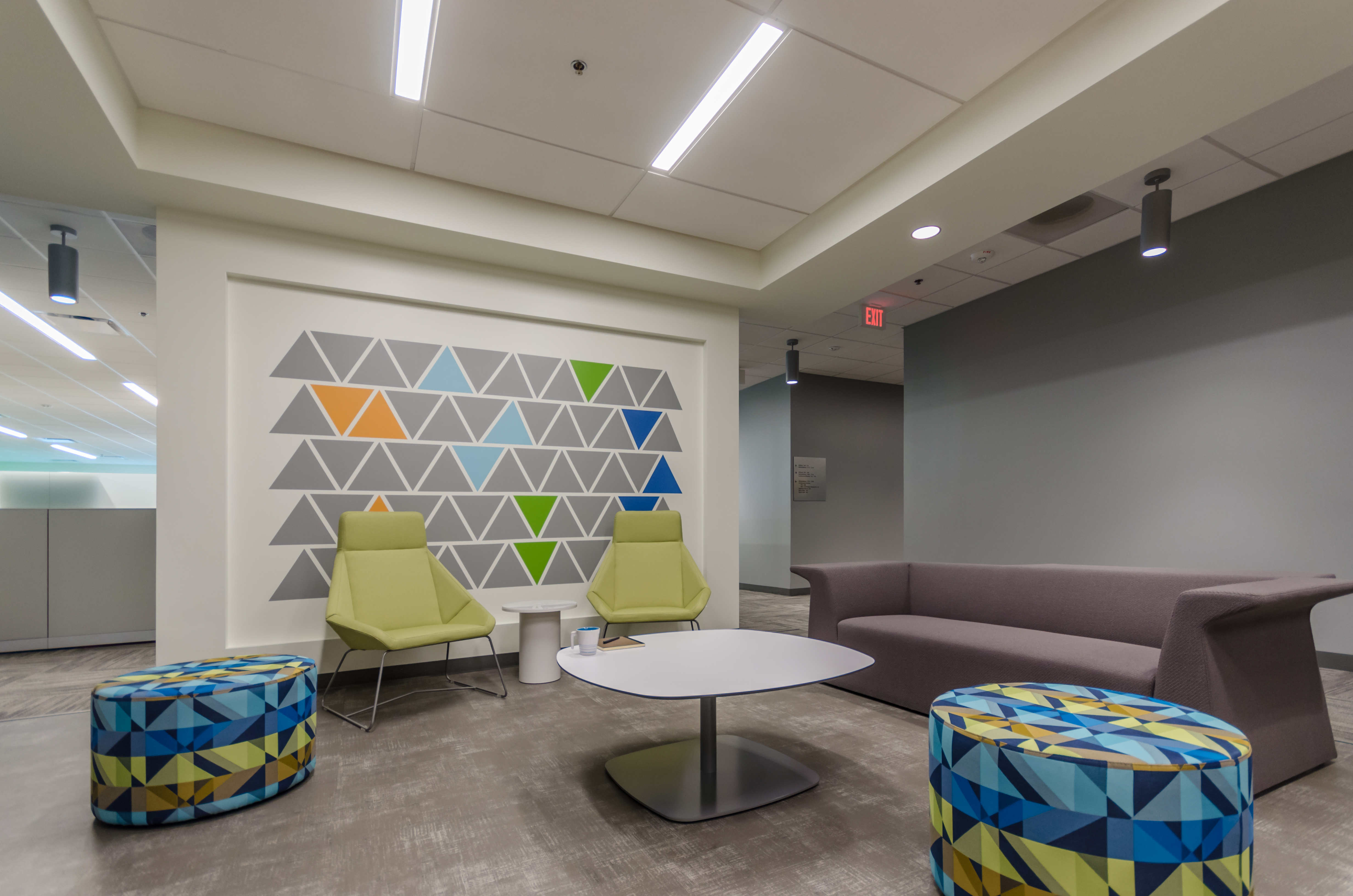 The project includes fit-out of 49,250 SF of existing office space. The previous space held 260 seats and was in need of a refresh. The renovation increased the seating capacity to 375 seats, with 10% closed office and 90% open office space.