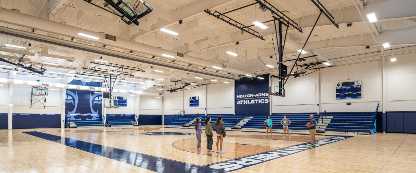 Engenium Group provided electrical engineering services to support the interior renovation of the Holton Arms School gymnasium, originally constructed in 1988. The renovation scope included the installation of new athletic equipment, the addition of interior window openings, and upgrades to finishes and flooring throughout the space.