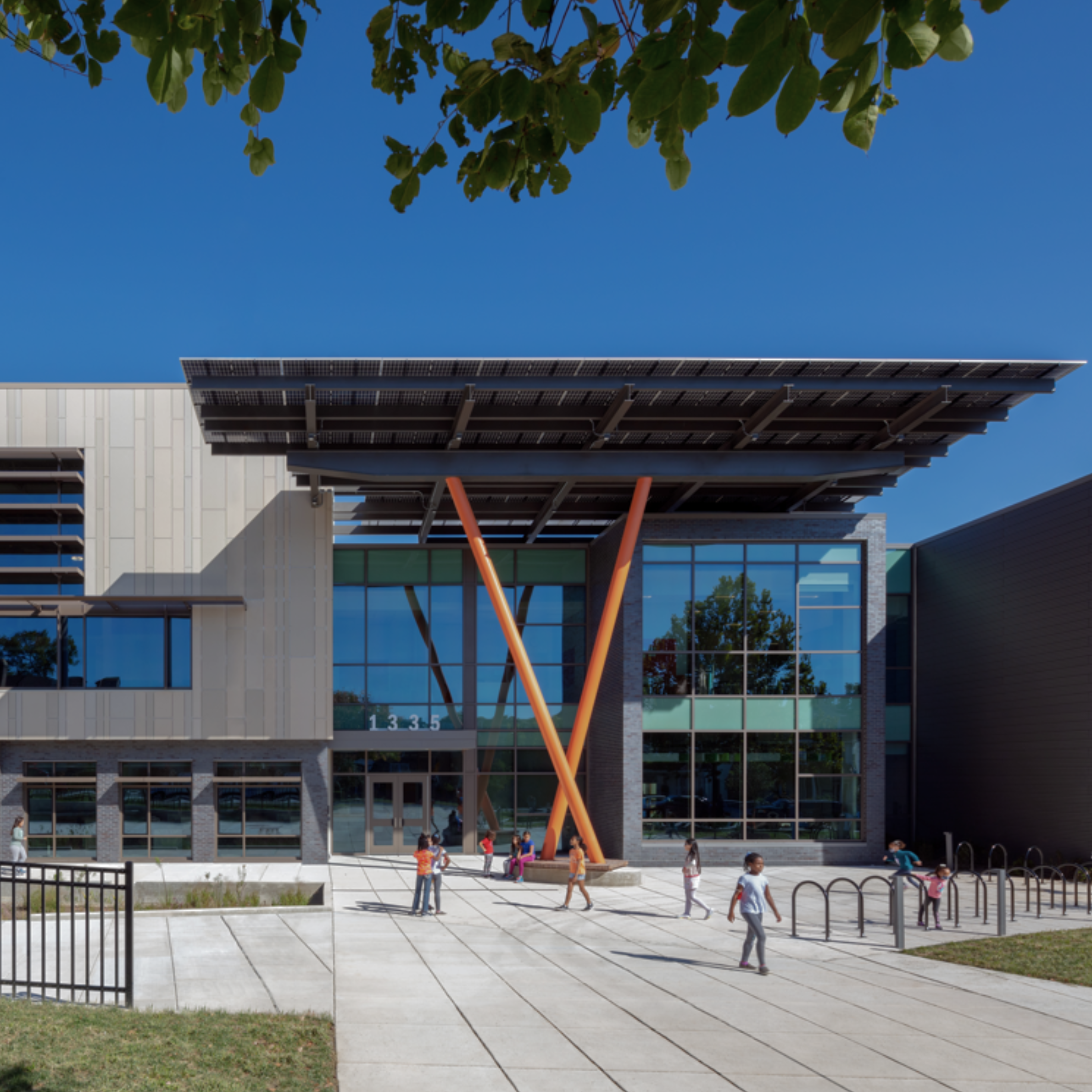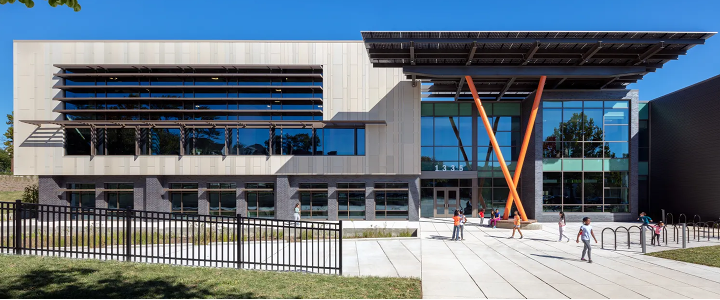 John Lewis Elementary is among the first Net Zero Energy-Ready and WELL Certified Schools in the District. The design and layout of the school combines a focus on indoor environmental quality variables and other components that promote health and well-being.