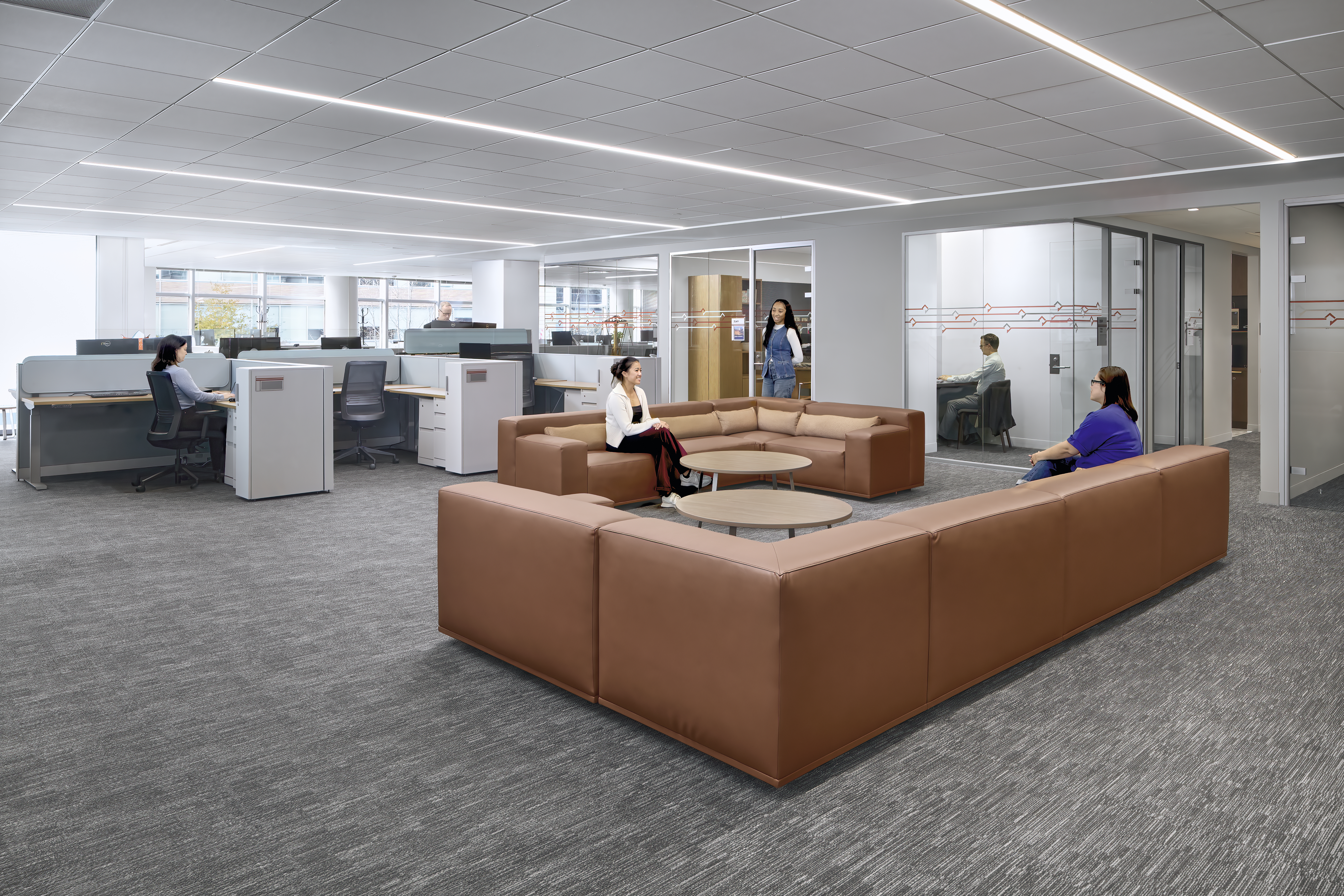 Engenium Group provided comprehensive mechanical, electrical, and plumbing (MEP) engineering design services to support the phased renovation. The design leveraged existing base building infrastructure while modifying HVAC air distribution, electrical power and lighting systems, and plumbing services to accommodate new layouts and higher-density work environments. Our engineers coordinated ventilation and thermal zoning for reconfigured spaces, supported technology and workstation power requirements, and extended plumbing systems for upgraded pantry and restroom facilities.